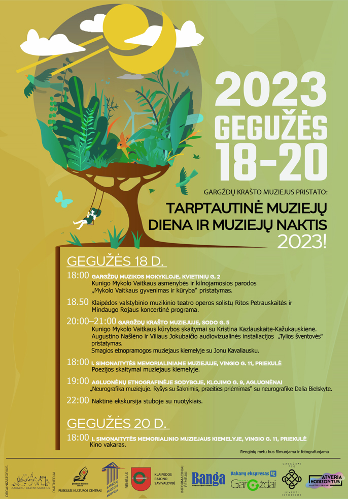 Priekuliškiai ir miesto svečiai gegužės 18 d., 18 val. maloniai kviečiami užeiti į poezijos skaitymus I. Simonaitytės memorialiniame muziejuje (Vingio g. 11, Priekulė). Tuo tarpu ieškantys tvarumo, dvasingumo ir darnos su savo vidiniu pasauliu 19 val. maloniai laukiami Agluonėnų etnografinėje sodyboje (Klojimo g. 9, Agluonėnai) neurografikos seanse „Neurografika muziejuje. Ryšys su šaknimis, praeities priėmimas“. Seansą ves neurografikos specialistė Dalia Bielskytė. Sodybos darbuotojos lankytojus vaišins tradiciniu Klaipėdos krašto pyragu su varške, o visiems pasistiprinus 22 val. prasidės naktinė ekskursija stuboje su netikėtais nuotykiais.