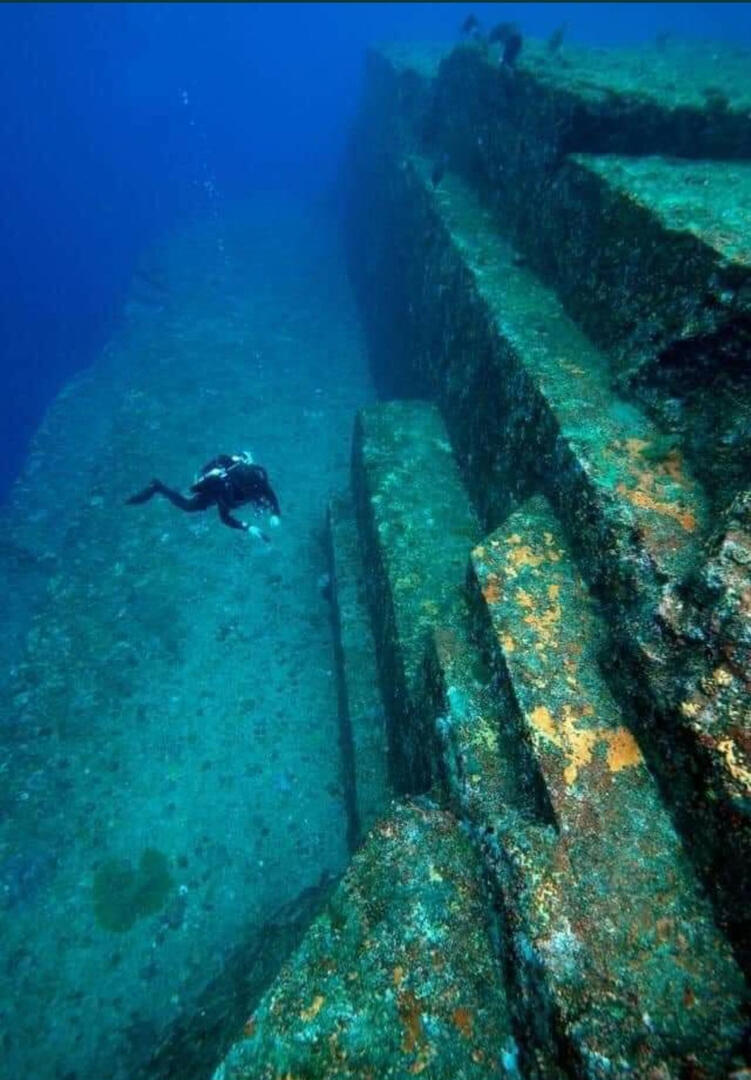 Monumentai iš milžiniškų akmeninių plokščių ir kolonų, išdėstytų po vandeniu 5-40 m gylyje, buvo aptikti 1986 metais.