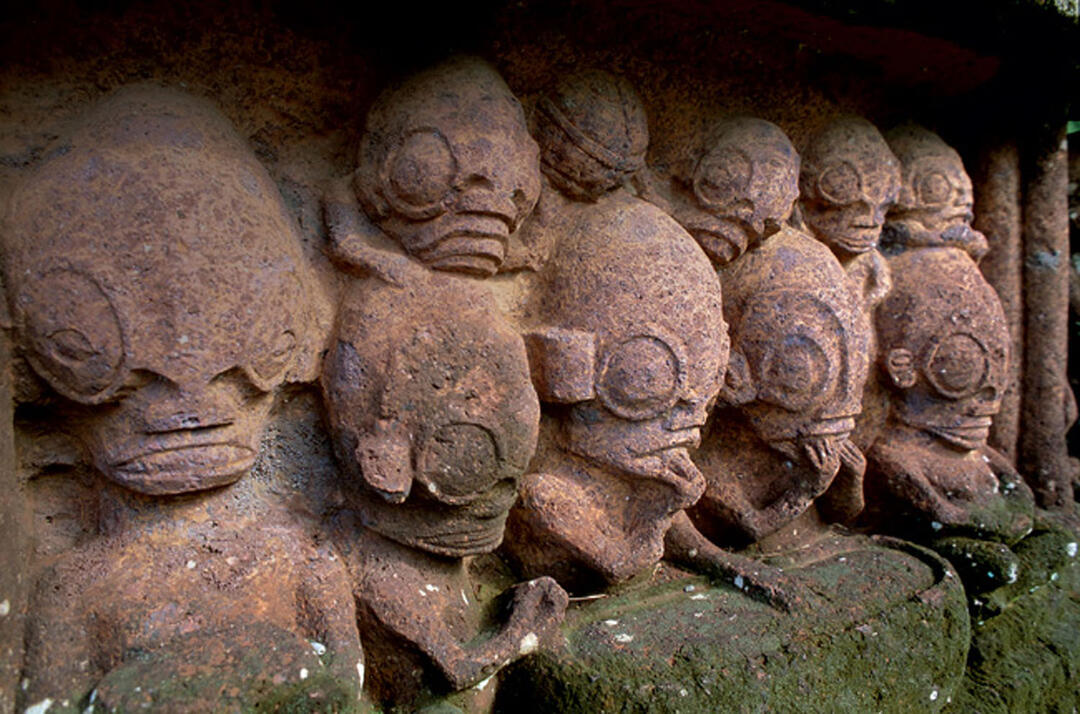 „Reptiloidų" statulos (Prancūzų Polinezija, Nuku Hivos sala)
