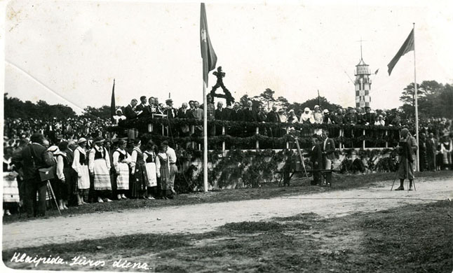 LIETUVOJE. Jūros diena Klaipėdoje 1934 08 12. Kalbą sako Lietuvos prezidentas Antanas Smetona.