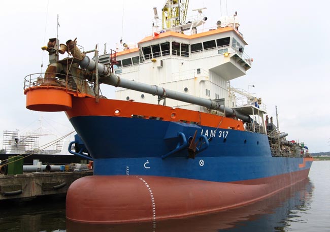 Uostų gilinimo darbams skirtam laivui "Ham 317“ remonto metu buvo pakeista apie 30 t plieno, atliktas hidrocilindrų, padavimo-įsiurbimo linijų keitimas, elektros variklių, veleno linijos, dugninių durų remontas. Taip pat buvo modernizuota visa vamzdynų sistema, pajungta nauja hidraulinė sistema, atliktas armatūros remontas, nudažytas laivo korpusas bei atlikta daug kitų su projektu susijusių darbų.