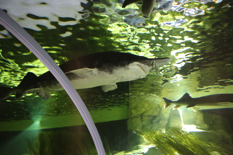 INTRIGA. Didžiausia atnaujinto akvariumo intriga - povandeninis tunelis, į kurį įžengus iš labai arti galima stebėti pagrindiniame baseine gyvenančius eršketus.