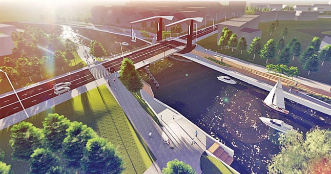 Atsižvelgiant į laivybos eismo ir miesto infrastruktūros raidą ateityje, nuspręsta statyti pakeliamą tiltą. Pasirinktas gervinis pakėlimo mechanizmas su skulptūriškais pilonais ir svertais. Projektuotojų vizualizacija