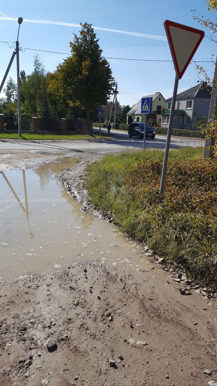 "Keleiviams nėra kur nuo vėjo, lietaus pasislėpti, nėra kur prisėsti, o dabar net kojos nėra kur pastatyti, iš autobuso išlipame tiesiai į balą", - skundėsi klaipėdietė.