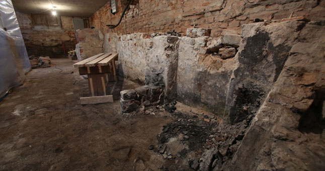 Pastato patalpose aptiktos mūrinės konstrukcijos ir raudonų pusplyčių grindinys. Centrinėje dalyje, prie fasadinės sienos, rasta buvusi mūrinė konstrukcija (ties šia vieta iki 1980 m. buvo įėjimas į patalpas).