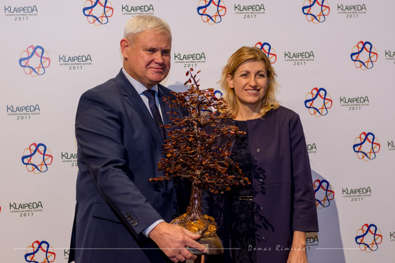 Renginį vainikavo iš Klaipėdos miesto mero Vytauto Grubliausko rankų Marijampolės miesto merei Irenai Lunskienei įteiktas Lietuvos kultūros sostinės simbolis – gintarinis medis.