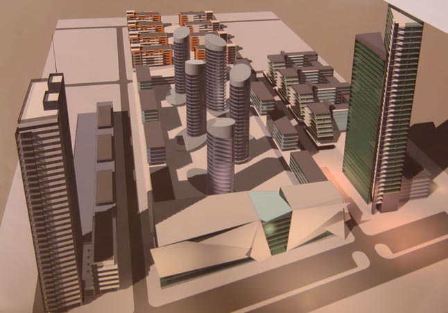 NELEIDO. Du iki 30 aukštų dangoraižius ketinta pastatyti buvusio bendrovės "Kretingos grūdai" malūno teritorijoje Tilžės gatvėje, tačiau planų teko atsisakyti, nes sklypas yra senamiestyje. Redakcijos archyvo vizualizacija