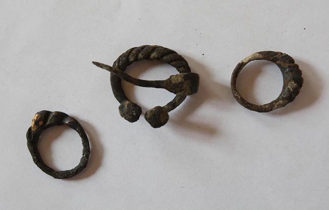 VERTINGIAUSI. Du bronziniai XIII ar XIV amžiaus baltų žiedai ir to paties laikmečio sagė - tai šiuo metu vieni vertingiausių piliavietėje vykdomų naujų archeologinių kasinėjimų radiniai.