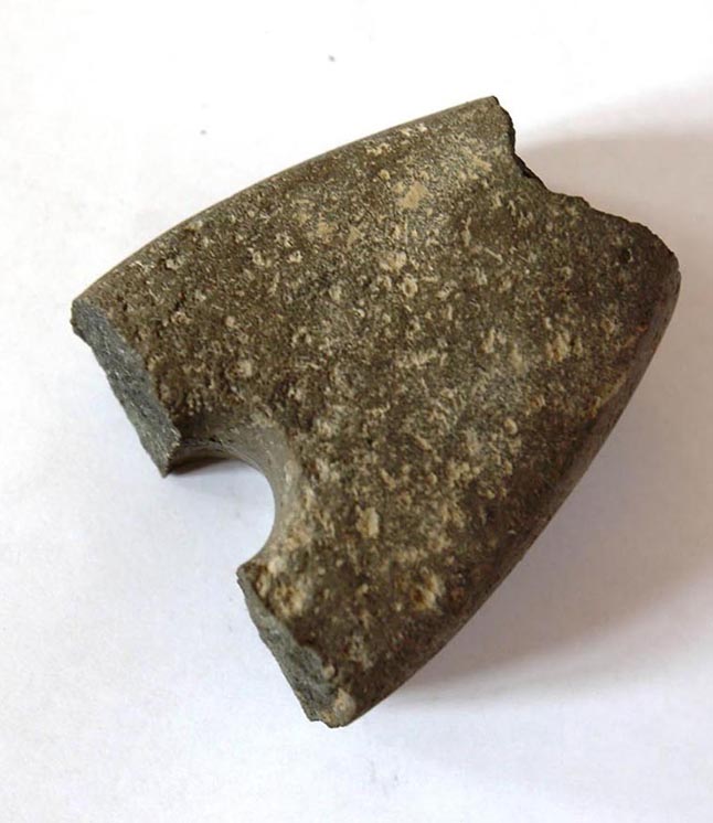 SENIAUSIAS. Vienas išskirtinių šiuo metu piliavietėje vykdomų kasinėjimų radinių - neolito laikotarpį menantis laivinio kovos kirvio fragmentas.