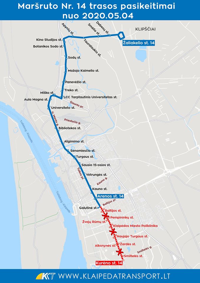 Nuo gegužės ketvirtos dienos trumpiname 14-ojo maršruto trasą iki Arenos stotelės.