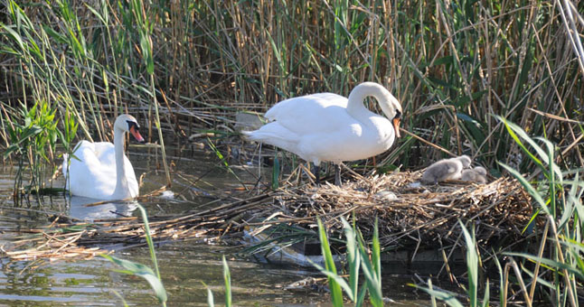 Pasak J. Morkūno, kai kiaušiniai būna intensyviai užperėti arba išsirita jaunikliai, tikėtis, kad gulbės paliks lizdą, jau yra maža tikimybė.