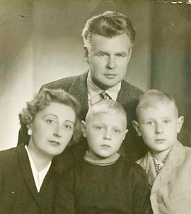 | Kai Bronė Elertienė pradėjo dirbti Kraštotyros muziejuje, sūnūs Audrius ir Montanas buvo kiek ūgtelėję. O vėliau jie tapo ir neblogi mokslinės bendradarbės, dar po kelerių metų - Kraštotyros muziejaus direktorės pagalbininkai. Pirmoje eilėje iš kairės - Bronė, sūnūs Audrius bei Montanas ir šeimos galva Kęstutis Elertas. |