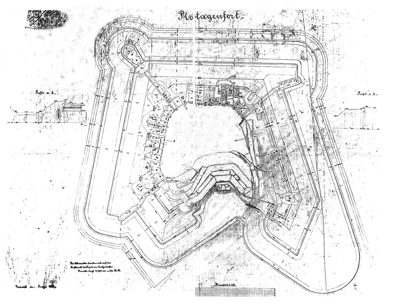 1872 m. Magistrato ataskaitoje pažymėta, kad Plantacijos fortas baigtas. Ši tvirtovė - taip ją vadina istorikas J.Tatoris - buvo netaisyklingo penkiakampio plano su poternomis. Visiškai neaišku, kodėl fortas buvo nesimetriškas. Aplink Karaliaučių 1872-1884 m. pastatyta net 12 fortų, kurių visi buvo simetriško rombo formos. Kiekvienas Karaliaučiaus fortas turėjo savo garbingą pavadinimą: pvz., Karaliaus Fridricho III, Karalienės Luizės ir t.t. Kiekviename forte buvo įrengta iki 30 įvairaus kalibro patrankų pozicijų.