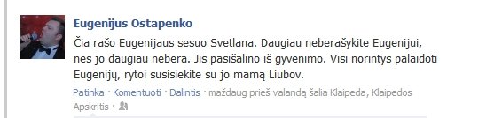 „Čia rašo Eugenijaus sesuo Svetlana. Daugiau nerašykite Eugenijui, nes jo daugiau nebėra. Jis pasišalino iš gyvenimo. Visi, norintys palaidoti Eugenijų, rytoj susisiekite su jo mama Liubov“, - rašoma dainininko, neseniai turėjusio nemažai problemų su teisėsauga, paskyroje.