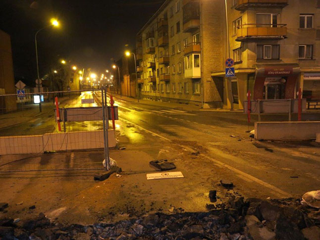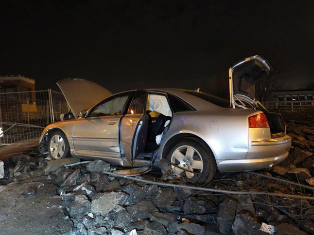 "Audi A8", atskriejusi Naujojo Uosto gatve, iš savo kelio šlavė betoninius atitvarus, kelio ženklus, vielines tvoras, laikinuosius šviesoforus. Galiausiai automobilis užstrigo asfalto išvartose.