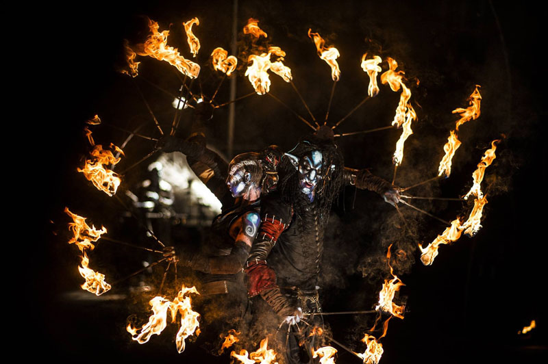 SU ROKU. Prancūzai „CompagnieFaï“ du vakarus skambant roko muzikai stebins žaižaruojančiais aikštės fejerverkais su kojūkininkais ir akrobatais.