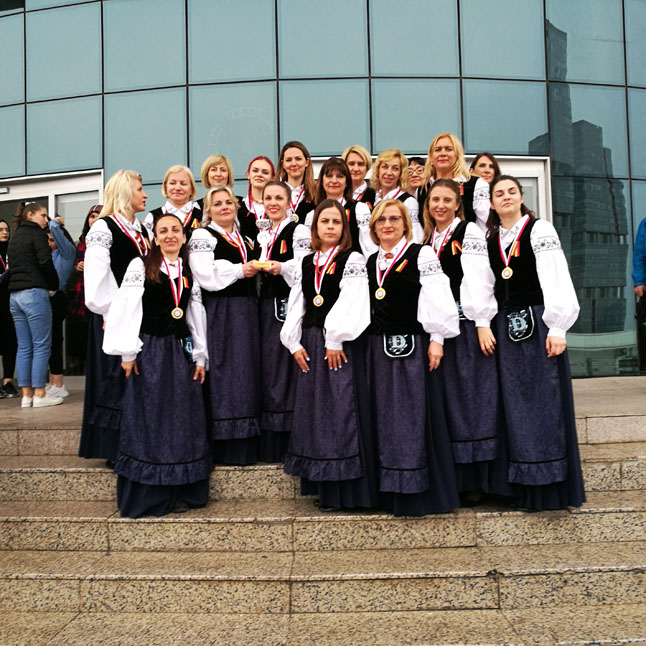 „Pirmą kartą dalyvavome tokio formato konkurse. Pasirinkome lietuvių kompozitorių kūrinius, kuriuose dominuoja lietuviško folkloro elementai bei šiuolaikinės muzikos išraiškos priemonės. Tai V. Augustino „Anoj pusėj Dunojėlio“, T. Kutavičiaus „Lioj“ (M. Milašiaus tekstas) ir N. Sinkevičiūtės „Skrido bitė“. Konkurse dalyvavę chorai derino liaudiško ir akademinio dainavimo stilius. Mums (ir komisijai) labai patikusios bulgarės savo kūrinius atliko taip vadinamu gerkliniu dainavimo būdu“, - papasakojo choro „Dangė“ meno vadovė Judita Kiaulakytė.