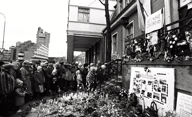 10.25 val. Latvijos radijas pranešė, kad visi kviečiami prie Domo katedros Rygoje pagerbti Lietuvos aukų. Latvijos AT pirmininko pavaduotojas Dainis Ivanis kreipėsi į visą pasaulį pagalbos Lietuvai. Nes po jos seks Latvija, Estija, - pareiškė jis.