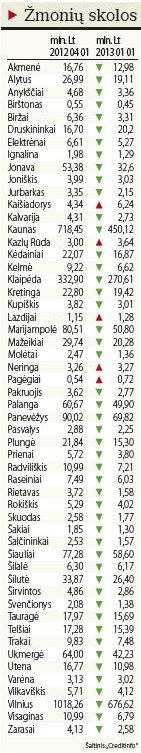 Asmeninės kredito istorijos sistemos „Manocreditinfo.lt“ duomenimis, per 2012 m. apie 12 mln. litų išaugo žmonių įsiskolinimai už komunalines paslaugas, laiku neapmokėtų sąskaitų už telekomunikacijų paslaugas suma padidėjo 5 mln. litų, laiku negrąžintų vartojimo kreditų suma išaugo daugiau nei 21 mln. litų.