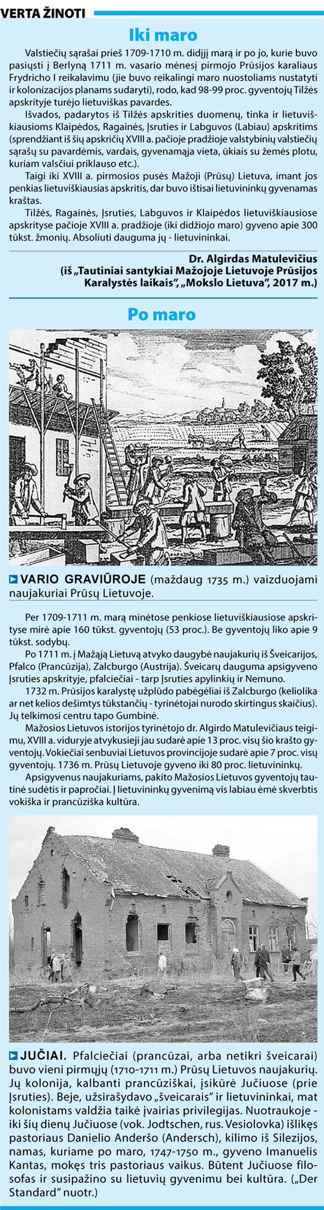 Lietuvoje gyvena daugiau kaip pusė milijono gyventojų. Joje dabar daugiau miestų ir galvijų bandų nei kada nors anksčiau. Joje turtingesnis gyvenimas ir didesnis gimstamumas nei bet kurioje kitoje Vokietijos vietovėje. Ir visa tai padarė karalius, pats sugalvojęs planą ir asmeniškai vadovavęs jo vykdymui. Jis įdėjo daug triūso ir pastangų. Jis negailėjo didelių išlaidų, pažadų ir apdovanojimų, kad pusei milijono žmonių suteiktų laimę ir gyvenimą..."