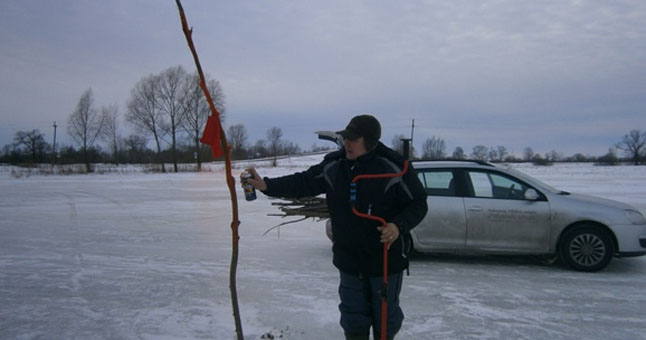Kartys su vėliavėlėmis ledo kelyje styro kas 50 metrų, ledo storis svyruoja nuo 20 iki 30 cm.