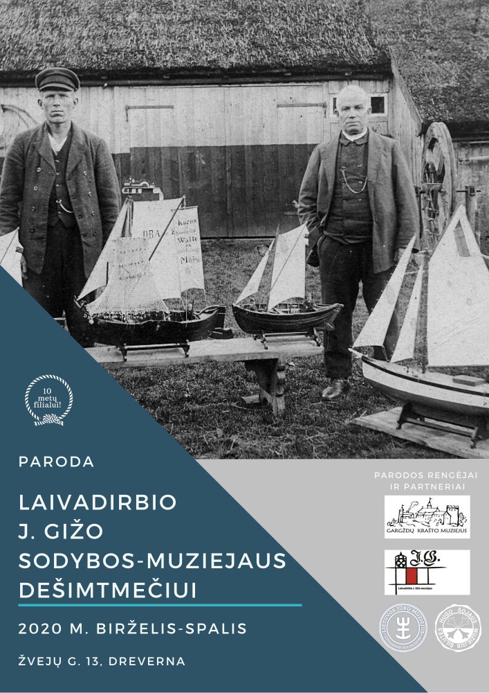 „Laivadirbio J. Gižo sodybos-muziejaus dešimtmečiui“ paroda veiks iki spalio mėnesio. Lauksime Jūsų filiale J. Gižo sodyboje-muziejuje Žvejų g. 13, Dreverna. Telefonas pasiteiravimui 8 696 95 861.