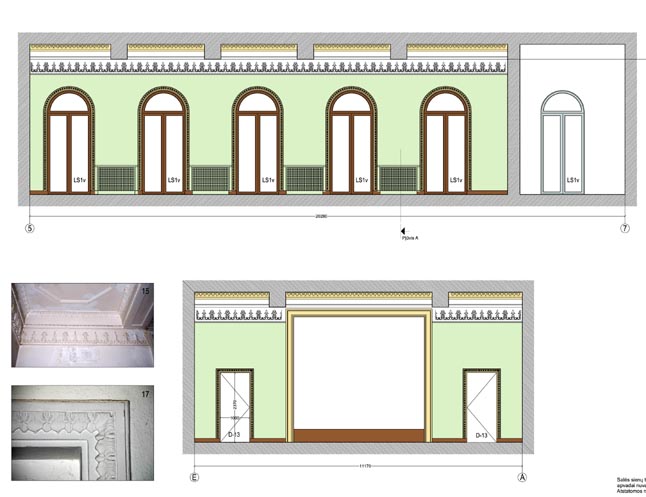 "Restauracijos metu reikės ir netradicinių sprendimų, nes pastatas yra paveiktas drėgmės. Sudėtingiausia bus pritaikyti senąjį tinką prie naujojo, nes senąsias tinkavimo technologijas išmanančių meistrų yra likę tik vienetai. Salė yra gana geros būklės. Kai susitvarkysime su grindų pagrindu, žiūrėsime, ar senojo parketo likučių galėsime nejudinti ir išlaikant tą patį grindų lygį jį palikti vietoje, ar visgi reikės šį parketą perkloti iš naujo. Jo yra apie 6-9 kvadratiniai metrai", - pasakojo A. Zokaitis.