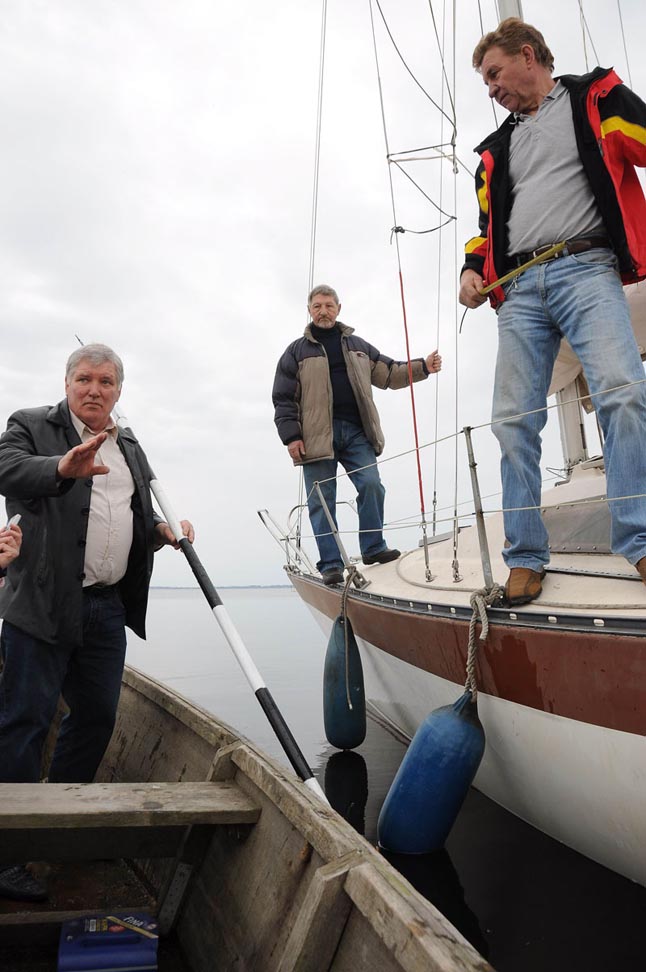 "Buriniai laivai tiesiai prieš vėją neplaukia, o mes neturime kur pasisukinėti, daryti zigzagus. Per seklumas plaukdami švertus ištraukiame, tada pradeda nešti šonu, dreifuojame. Arba šokam į vandenį, iki kelių susmingame į dumblą ir stumiame laivą. Jeigu motoriniai laivai ir išknisa vagelę su sraigtais, gylis žiotyse vis tiek būna tik 80 cm ar 1 m", - sakė Drevernos buriavimo klubo pirmininkas Antanas Eirošius.