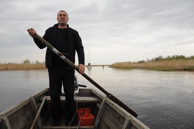 ŽVEJAI. Nors dreverniškiai tikino, kad žvejyba sužlugdyta, mums vis dėlto pavyko užfiksuoti žvejus. Tačiau jie į žvejybą begali plaukti tik su tokiomis valtelėmis. Beje, tas žvejys rusniškis.