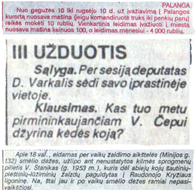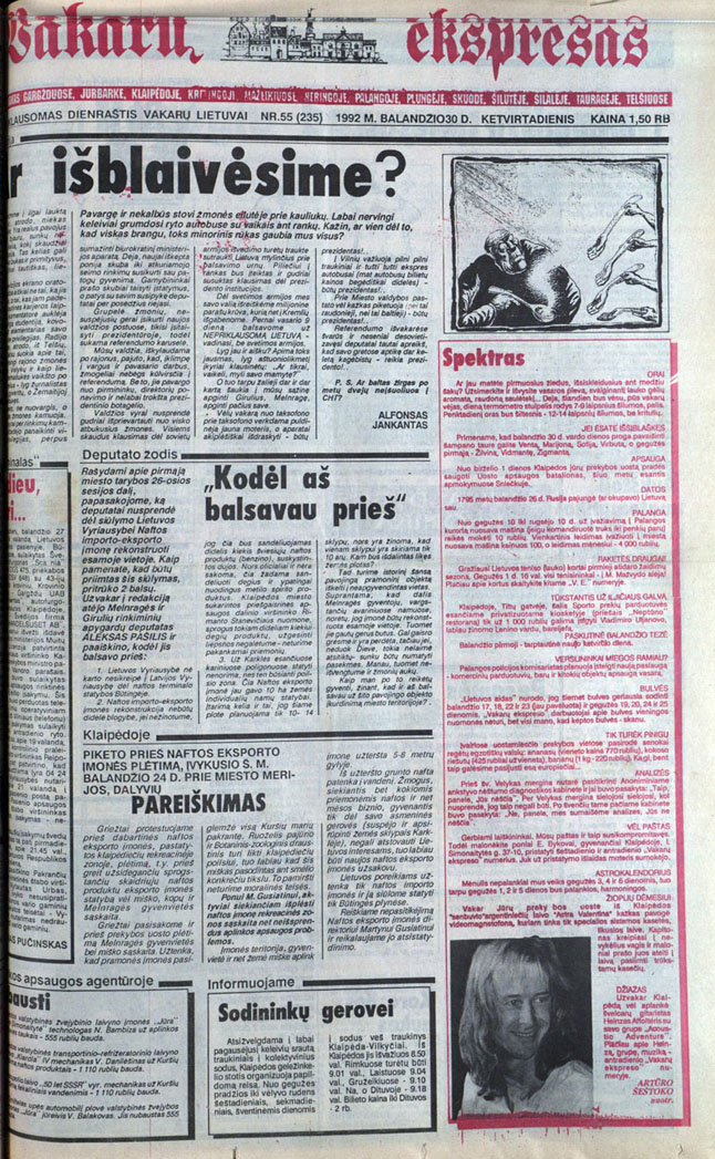 Sprendžiant iš paskutinio 1992 metų balandžio mėnesio "Vakarų ekspreso" numerio, naftos bazė klaipėdiečius gąsdino labiau. Normalu - savi marškiniai arčiau kūno.
