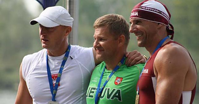 | A. Nazarovas (viduryje) neturėjo lygių tarp 45-49 metų kanojininkų. |