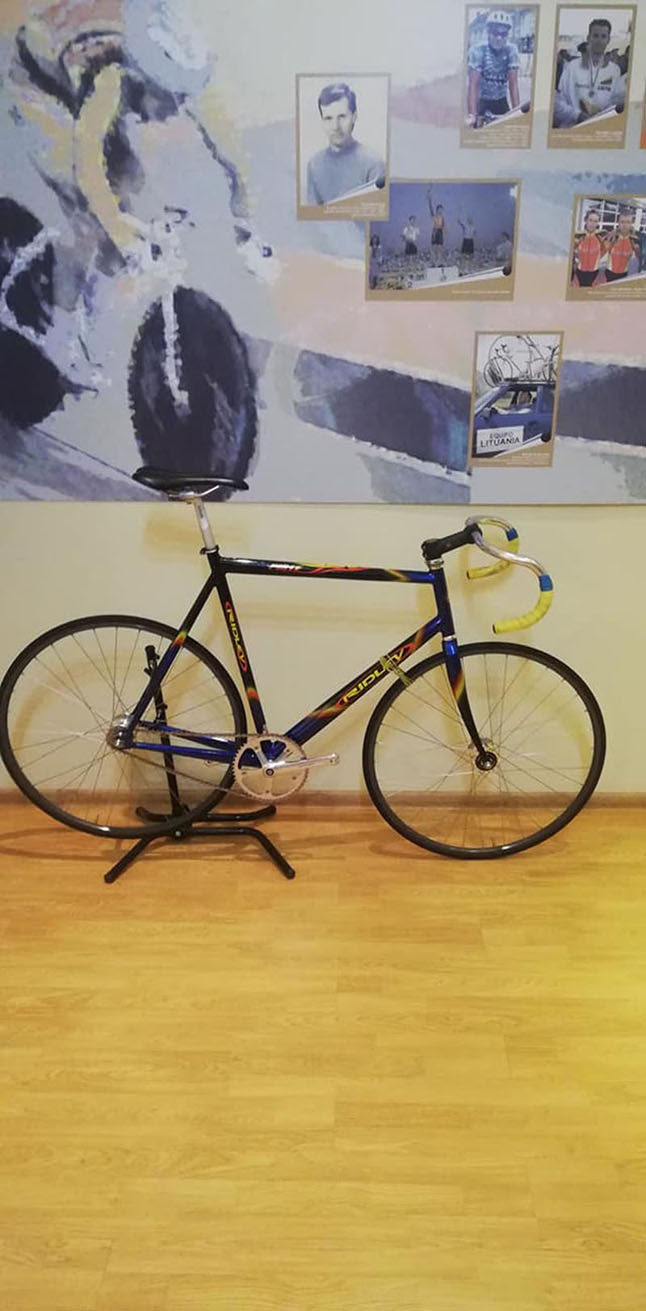 ISTORINIS EKSPONATAS. Ramūno Navardausko paauglystės laikų dviratis, kuriuo jis anksčiau lenktyniaudavo treko varžybose. Algirdo VAICEKAUSKO nuotr.