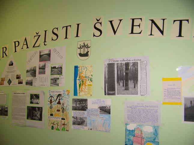 Lapkričio viduryje antrojo aukšto fojė sieną papuošė Šventosios žemėlapis ir herbas, o šalia išsirikiavo plakatai su mokinių surinkta medžiaga. Čia galėjai sužinoti apie Šventosios bažnyčią, švyturį, apie molą, tris Šventosios upės tiltus, pajūrį puošiančias skulptūras, Žemaičių alką, paminklus tremtiniams ir kovotojams už laisvę; neužmiršti ir žymūs Šventosios žmonės – pajūrio smėlynus apželdinę miškininkai, archeologas Mikelis Balčius. Mokiniai ne tik surinko ir apiformino medžiagą, bet ir patys nusifotografavo šalia aplankytų objektų.