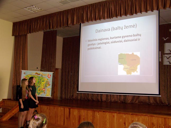 Lapkričio 19 d. susirinkę į I - X kl. mokinius apjungusią integruotą pamoką - konfe-renciją, mokiniai dalijosi kelionių įspūdžiais bei įgytomis žiniomis. Klasių pranešimai buvo gausiai iliustruoti spalvingais vaizdais, netrūko ir muzikos. Kiekviena pristatoma išvyka buvo užfiksuojama spalvotame Lietuvos žemėlapyje.