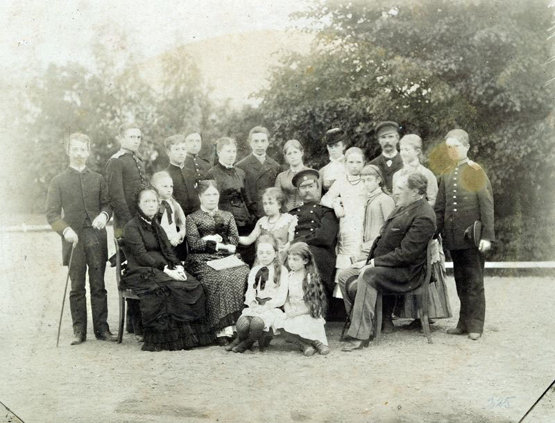 TIŠKEVIČIAI. Juozapo Tiškevičiaus ir Sofijos Horvataitės šeima apie 1880 m. (fotografas nežinomas). Jiedu susilaukė 12 vaikų: 8 sūnų ir 4 dukrų. Du pirmagimiai ir du paskutinieji vaikai anksti mirė. Kiti užaugo, pasižymėjo Lietuvos kultūroje, visuomeniniame gyvenime.