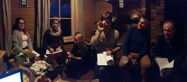 Įsirengėme tokiems susibūrimams klėtį iš senų rąstų. Ten ir vakarojame savaitgaliais.