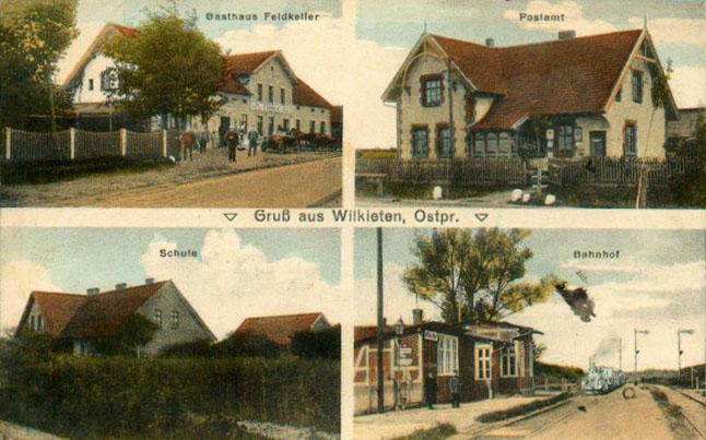 XX a. pradžios atvirukas. Kairėje, viršuje, - viešbutis "Feldkeller" ("Lauko rūsys"). Palei sodą vedė kelias į geležinkelio stotį. Kairėje, apačioje, - mokykla. Čia gyveno turtuolis Jurkscheit, poetės Lisbeth Purwins-Irrittič dėdė. Dešiniojoje atviruko dalyje - paštas.