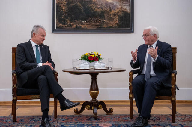 Vokietijoje viešintis prezidentas Gitanas Nausėda pirmadienį su Vokietijos kolega Franku-Walteriu Steinmeieriu (Franku Valteriu Šteinmejeriu) aptarė regioninio saugumo ir Vokietijos brigados dislokavimo klausimus.