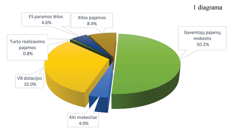 Savivaldybės biudžeto pajamas sudaro pajamos iš gyventojų pajamų mokesčio 50,2 proc., kiti savivaldybės teritorijoje surenkami mokesčiai siekia 4,0 proc., turto realizavimo pajamos 0,8 proc., valstybės biudžeto dotacijos 32,0 proc., Europos Sąjungos finansinės paramos ir bendrojo finansavimo lėšos 4,6 proc., kitos pajamos sudaro 8,4 proc. visos biudžeto pajamų apimties. Pajamų struktūra pavaizduota 1 diagramoje.