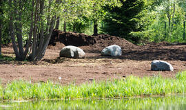 Į japoniškąjį sodą atvežta ir čia įkurdinta daugiau kaip pusšimtis įvairaus dydžio iš marių dugno iškeltų riedulių. Didžiausias jų sveria daugiau kaip 7 tonas. Kasmet iš uosto akvatorijos iškeliama dešimtys akmenų, trukdančių navigacijai arba infrastruktūros darbams. Pastaruosius kelerius metus iškelti rieduliai yra sandėliuojami pietinėje uosto dalyje.
