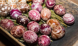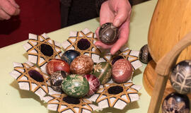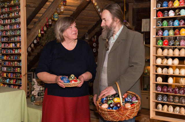 „Visi šie mano skutinėti ir vašku marginti margučiai būtų visiškas nulis, tik į geldą supilta didesnė ar mažesnė krūva kiaušinių. Prasmės, grožio ir unikalumo margučių rinkiniams suteikia Vytauto apipavidalinimas“, - giria vyrą Angelė.