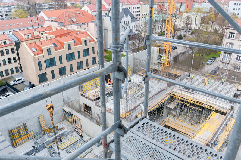 Kone metus užtrukome, kol atsakingai padėjome pamatus, nes būsimo priestato statyba prasidėjo nuo didžiulės duobės iškasimo. Teko dvylika metrų kastis į žemę, kas yra 10 metrų žemiau nei Danės upės lygis.