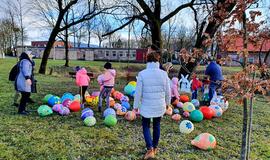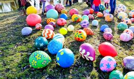 Po beveik mėnesio pasiruošimo darbų šiandien buvo išridenti velykiniai margučiai iš namų ir pasklido po visus Paupius.