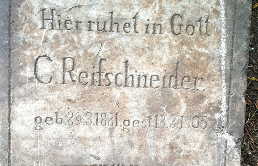 UŽRAŠAS ant paminklo liudija, jog ramybės pas Dievą linkima C. Reifschneider, gimusiam (-iai) 1821 kovo 29 d. ir mirusiam (-iai) 1905 kovo 18 d.