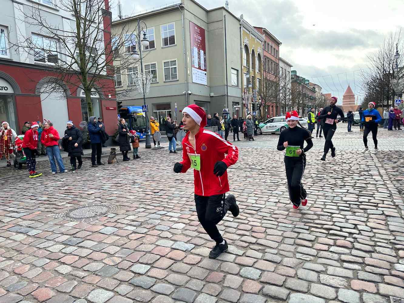 Prie starto linijos stojo per 300 bėgikų, pasipuošusių Kalėdų seneliais, nykštukais, snieguolėmis, šventiniais elniais ir kitais kalėdiniais kostiumais.