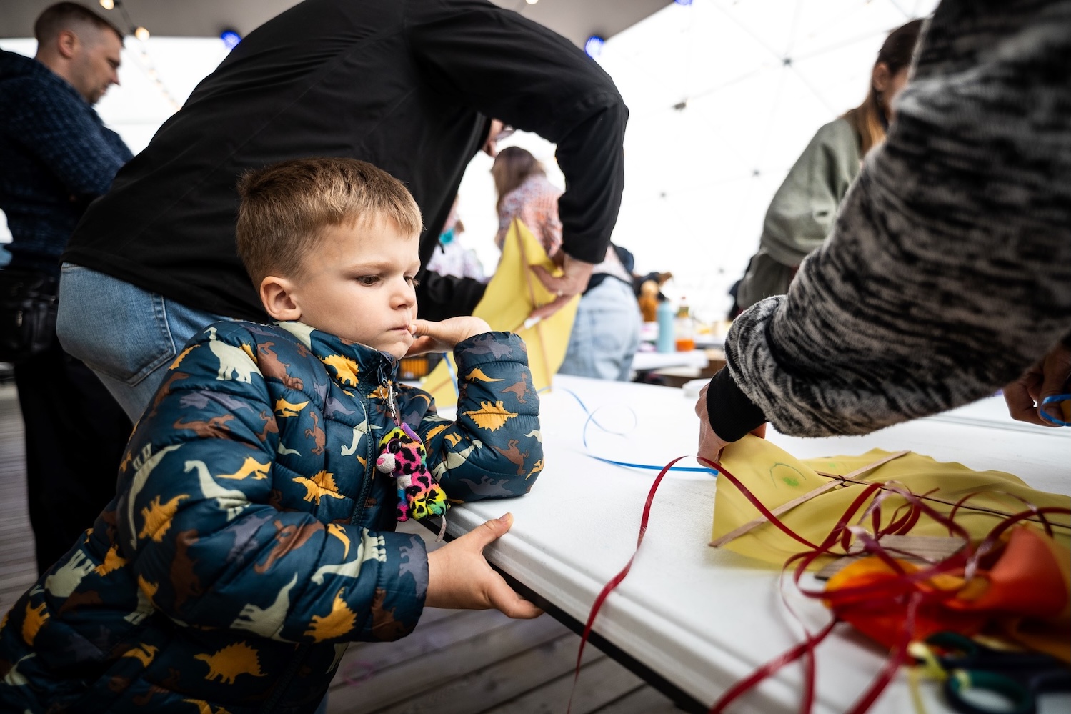 Lankytojai ne tik stebėjo figūrinius aitvarus, bet ir patys gamino - vos per pusdienį čia buvo pagaminta 600 aitvarų, kuriuos maži ir dideli dekoravo jūriškai ir išmoningai.
