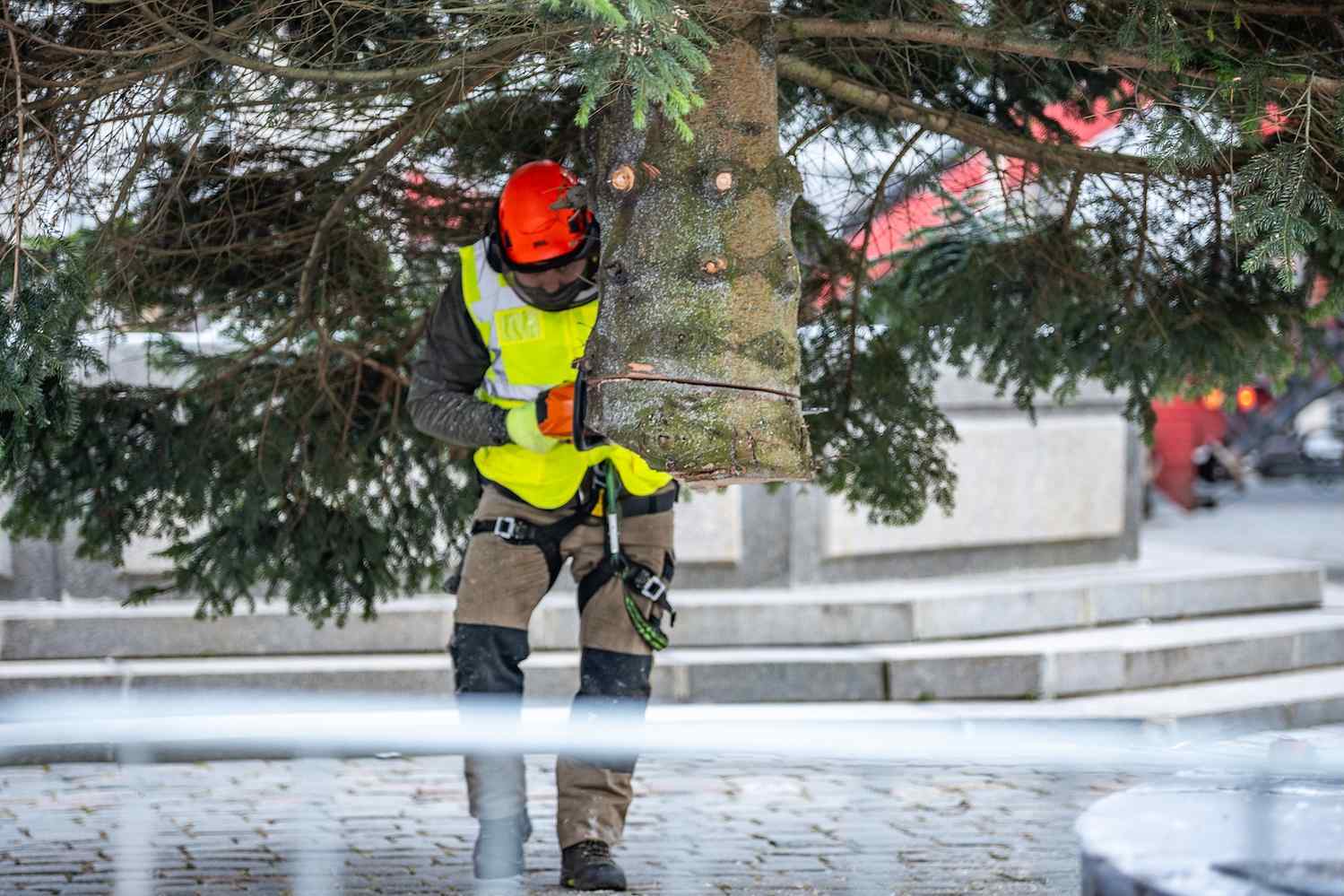 Pirmadienio rytą į Teatro aikštę atkeliavo svarbiausias Kalėdų elementas - eglutė. Tarp 18-kos pasiūlymų laureate tapo Klaipėdos rajone – Vėžaičiuose – augusi eglė.