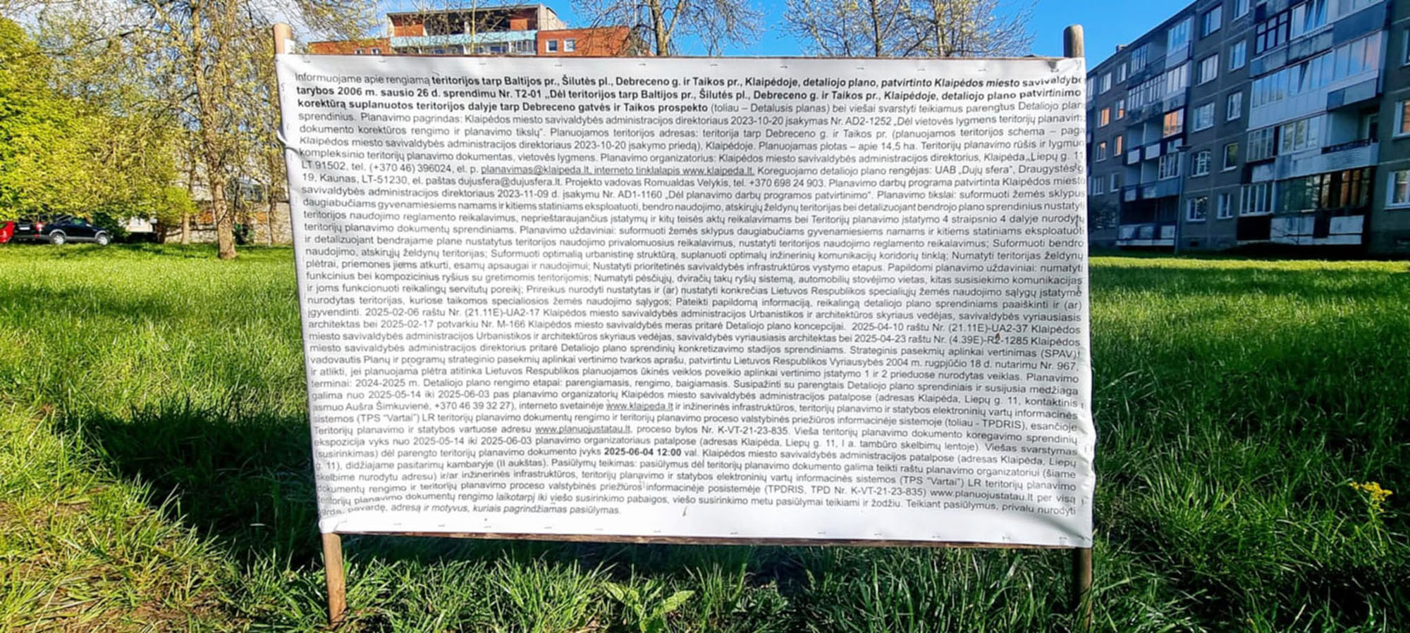 Dienraščiui moteris pasakojo, kad stende, kurį savivaldybė buvo pastačiusi prie daugiabučių, rašoma, jog minėtoje teritorijoje, kur šiuo metu žydi obelys, planuojama suformuoti žemės sklypus daugiabučiams gyvenamiesiems namams ir kitiems statiniams.