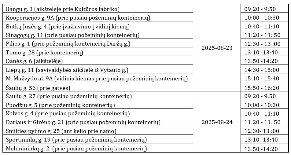 Šį savaitgalį, rugpjūčio 23 ir 24 dienomis, Klaipėdos kvartaluose nuo Bangų g. iki Sportininkų mikrorajono iš daugiabučių namų gyventojų bus surenkamos didelių gabaritų ir medienos atliekos.