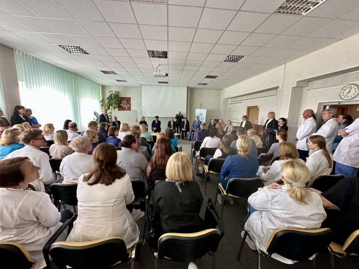 Išvažiuojamame Seimo Sveikatos reikalų komiteto posėdyje bei susitikime su KUL darbuotojais dalyvavo Sveikatos apsaugos viceministrės J. Čelutkienė bei Nerija Stasiulienė, Valstybinės ligonių kasos direktorius Gytis Bendrius, Klaipėdos universiteto rektorius prof. dr. Artūras Razbadauskas.